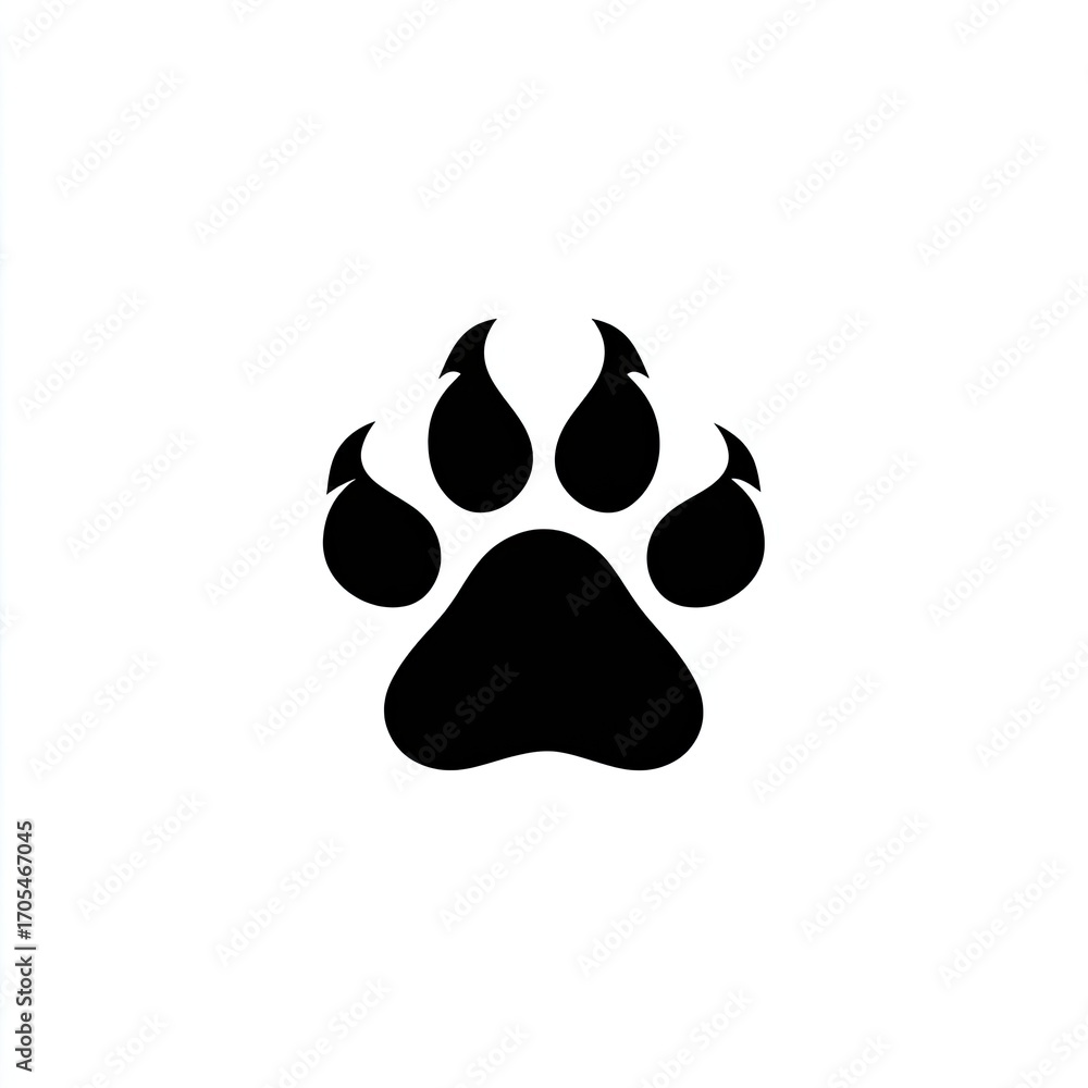 Fototapeta Koty - Solid black paw print, stylized #1705467045