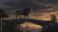 • A majestic lion walking across a rock bridge at twilight