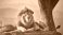 Fototapeta Koty - a lion is laying on a rock next to a tree #1730368656