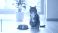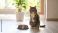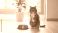 Fototapeta Koty - A fluffy feline sits near a bowl in a sunlit room #1745420865