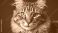 • A close-up portrait of a feline with striking green eyes, brown stripes, and long whiskers set against a dark background