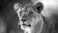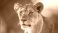 • A detailed portrait of a lioness, bathed in warm sunlight. The majestic feline gazes attentively, its eyes focused. Bokeh background