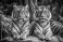 • A fierce Siberian tiger with bold stripes stares out in a close-up portrait displaying the intense eyes of this magnificent wild feline predator
