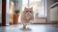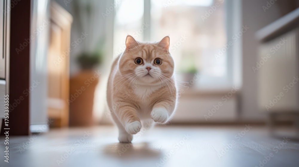 Fototapeta Koty - Cat sprints across floor with dynamic vigor feline quickly traverses indoor surface playfully #1759393555