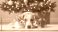 Fototapeta Koty - A cute dog, cat, and rabbit cuddling together in front of a Christmas tree. Unlikely animal... #1763854464