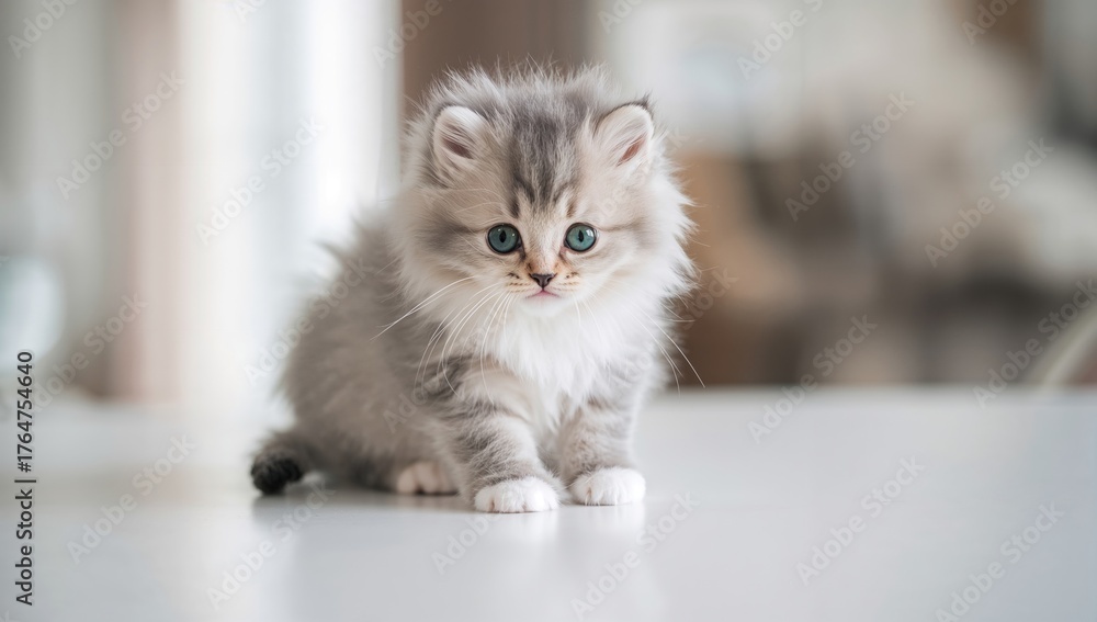 Fototapeta Koty - Domestic feline on a white background. #1764754640