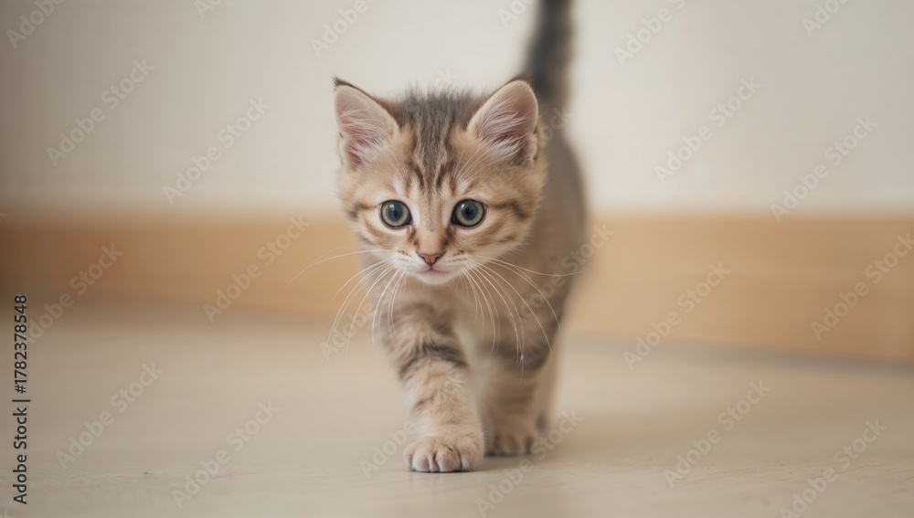 • A fluffy feline strolling gracefully, showcasing its playful nature, awareness of pet care