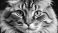 • Up-close portrait of a fluffy-faced feline with striking, golden eyes. The cat displays a complex pattern of brown and tan fur