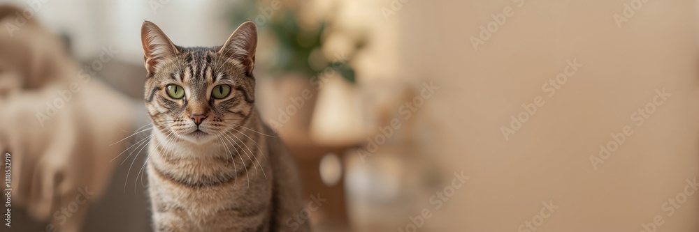 • American shorthair cat with a focused gaze, emphasizing feline alertness, animal observation day