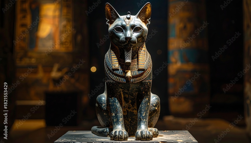 Fototapeta Koty - Ornate feline statue in an Egyptian temple, centered #1821553429
