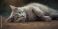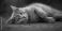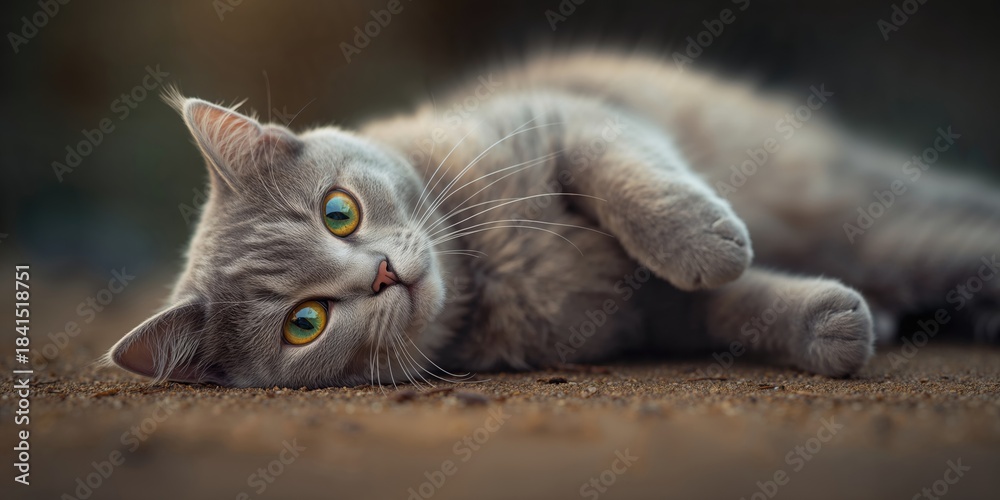 • Selective shot of a British Shorthair cat resting on floor, highlighting feline repose