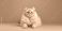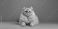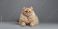 • Adult golden British cat with green eyes resting on gray background, relaxation and feline posture