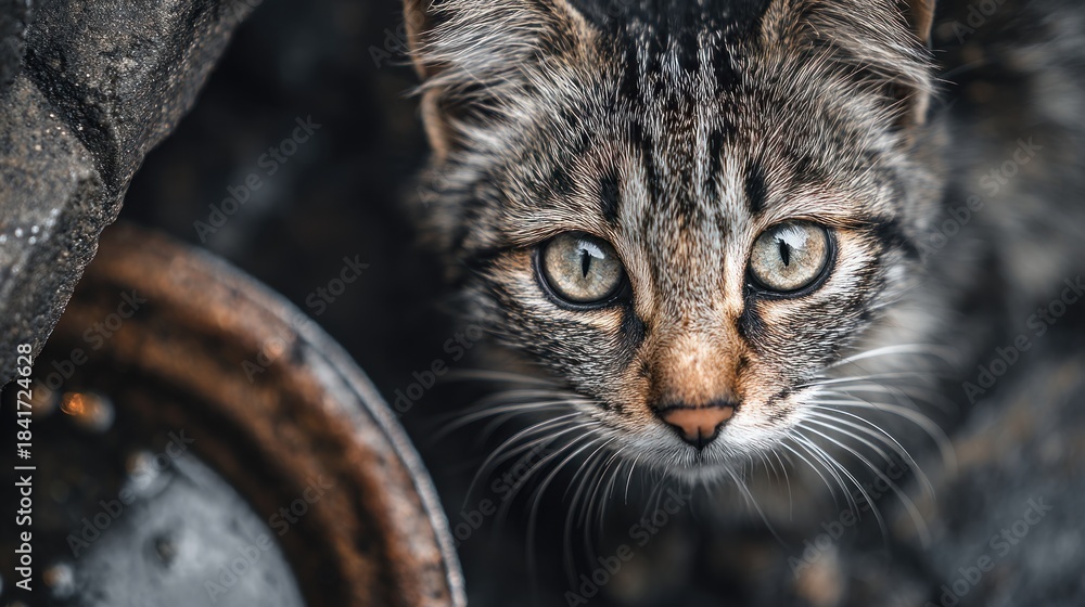 Fototapeta Koty - Hungry angry dirty cat homeless animal concept stray feline #1841724628