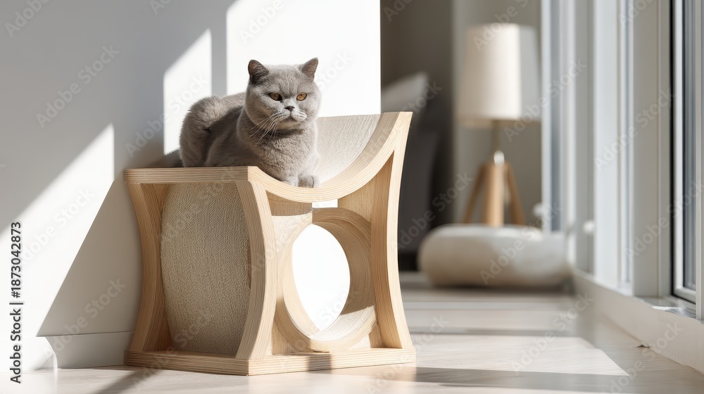 Fototapeta Koty - A cat sitting on a wooden chair in a room #1873042873