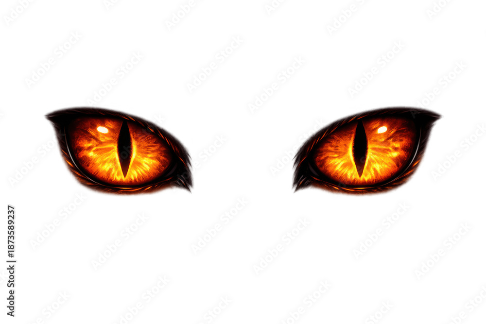 Fototapeta Koty - Dragon eyes glowing with a powerful orange light, creating an intense, scary, and evil stare.... #1873589237