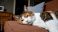 Fototapeta Koty - Sleeping tabby cat nestled on a cozy couch, embodying Caturday bliss, cozy Hygge vibes, feline... #1877587736
