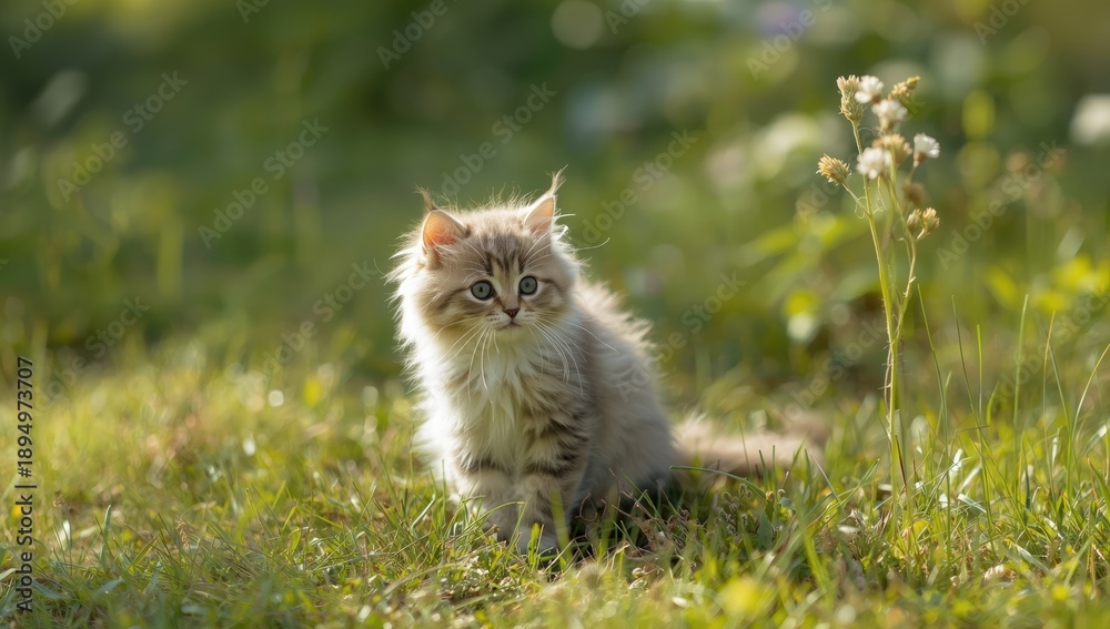 Fototapeta Koty - Cute feline with bright eyes and soft coat in a neutral setting, ideal for pet profile images #1894973707