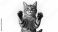 • Tabby cat with amber eyes standing on hind legs feline