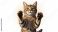 Fototapeta Koty - Tabby cat with amber eyes standing on hind legs feline #1932621294