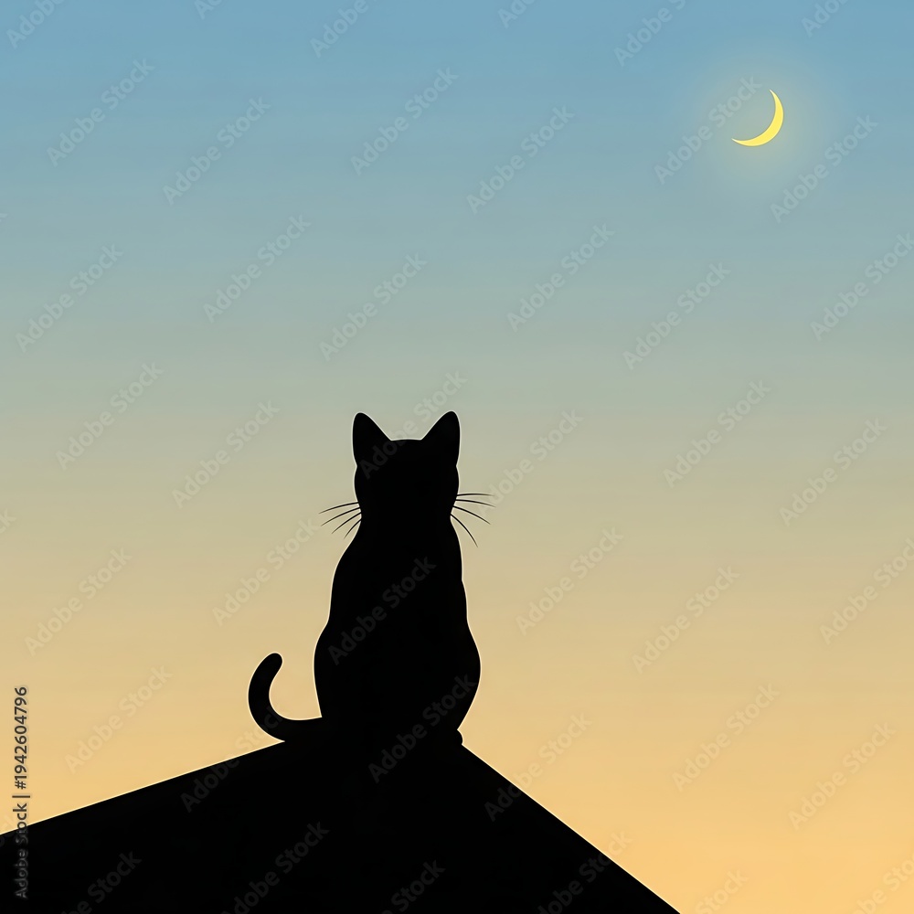 Fototapeta Koty - Silhouette of cat on roof at sunset. #1942604796