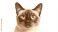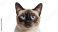• Close up of siamese cat face with blue eyes on white background feline animal