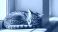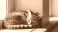 Fototapeta Koty - sleeping tabby cat on windowsill in sunlight #1986951858