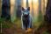 • Full-length portrait photography of a cute russian blue cat crouching against a beautiful nature scene. With generative AI technology