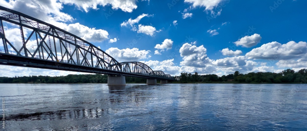 Fototapeta Mosty - MOST NA RZECE. RZEKA WISŁA, TORUŃ, POLSKA. #512133271