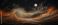 • Obraz malowany piaskiem na czarnym płótnie. Księżyc i wzburzone fale gorącej lawy. Abstrakcja.