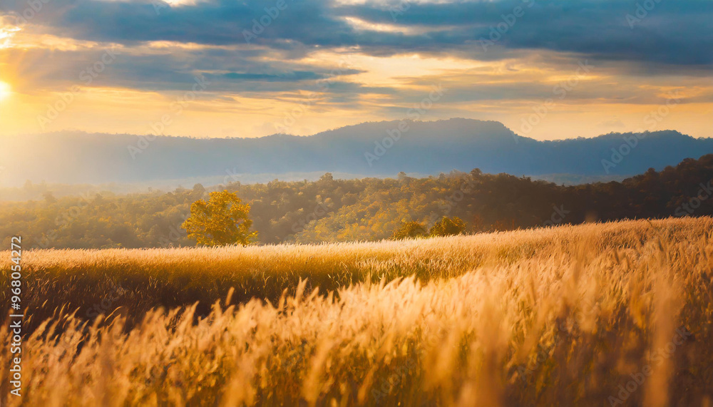 Fototapeta Pejzaże - Złote pole zboża krajobraz #968054272