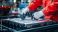 Fototapeta Pojazdy - W warsztacie technik elektryczny z precyzyjnością i skupieniem bada zużytą baterię litowo-jonową... #1008201107