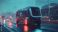 • Flota elektrycznych ciężarówek z modułowymi komorami jedzie synchronicznie wzdłuż autostrady, korzystając z AI do autonomicznej jazdy.