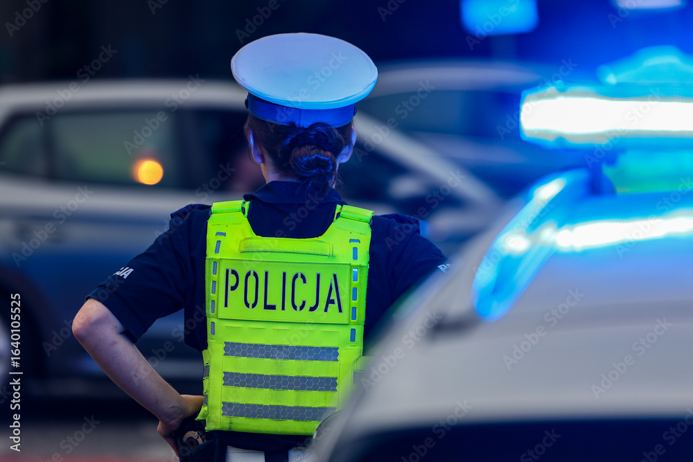 Fototapeta Pojazdy - Policja polska alarmowo wieczorem na ulicy. #1640105525