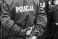 • Polscy policjanci i ich pojazdy podczas wieczornej służby w mieście.