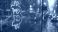 • Symbol bitcoin na mokrej szybie. W tle widać wiele pojazdów oraz szybko zmieniający się krajobraz miejskiej architektury.