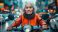 Starsza kobieta z lękiem w oczach, walczącą z intensywnym ruchem miejskim na motorze.