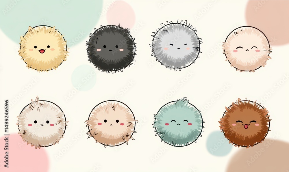 • Zestaw uroczych, okrągłych zwierzątek w pastelowych kolorach