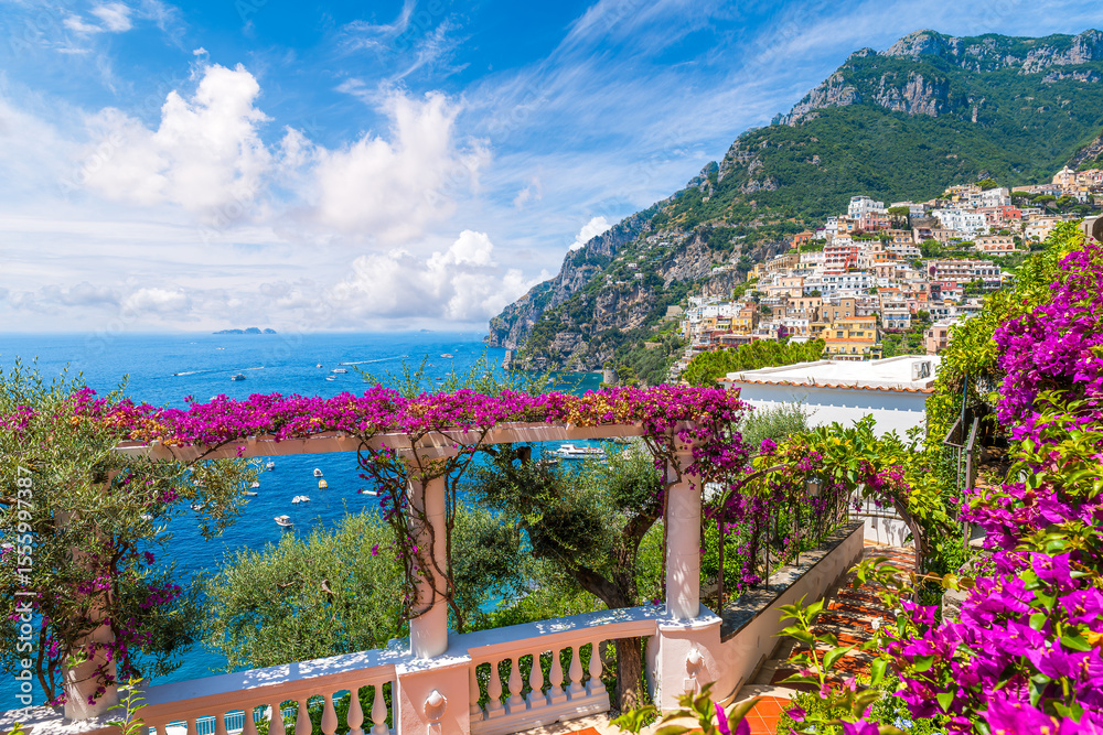 • Landscape with Positano town at famous Amalfi Coast, Italy