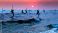 • traditional stilt fishermen of sri Lanka fishing at sunset