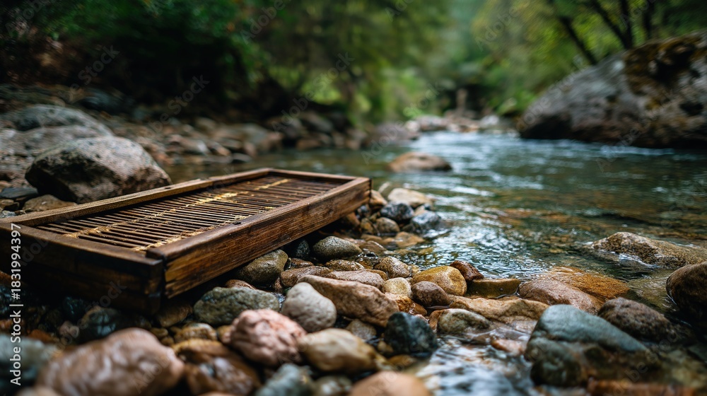 Obraz Pejzaże - Vintage Wooden Sluice Box Beside River #1831994397