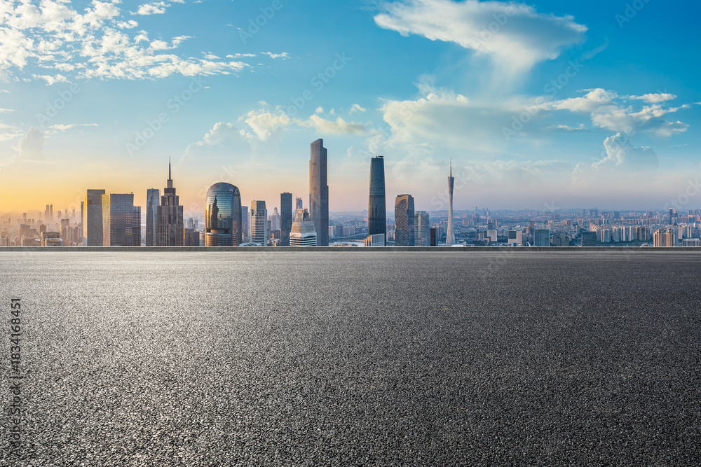 Obraz Pejzaże - Empty asphalt road and city skyline with modern buildings scenery at sunrise in Guangzhou #1834168451