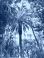 • Palm grove in the lush Marrakech garden, palm trees dense green fronds, warm daylight through foliage and blue sky