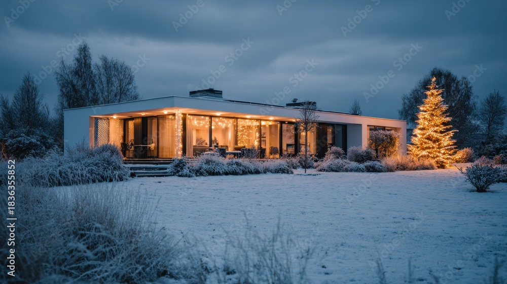 Obraz Pejzaże - Home lit in winter scene #1836355852
