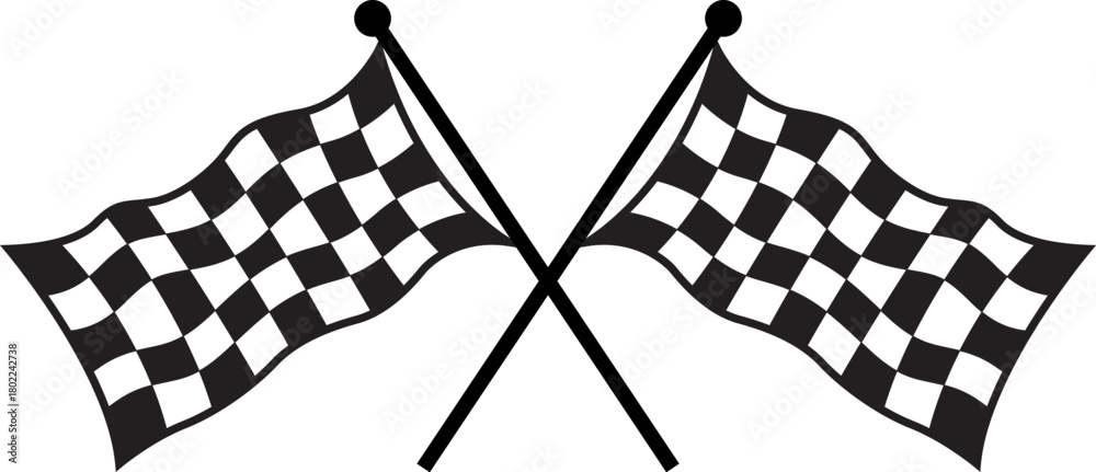 • Crossed checkered race flags representing motorsport finish line for car rally Finish line symbol for motorsport and auto race Vector graphic illustration