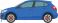 • A vibrant blue hatchback car illustration is shown in a side view profile