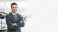 • A smiling man in a suit standing in a car showroom.