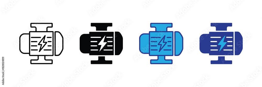 • Set of electric motor icons representing power and industry, isolated on white background. industrial concept imagery.