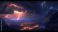 • Oszałamiający widok nocnego krajobrazu, oświetlony przez potężny piorun, który uwydatnia odległe światła miasta i okoliczny teren.