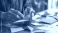 • Elderly person skillfully folding an orange origami crane surrounded by colorful paper squares