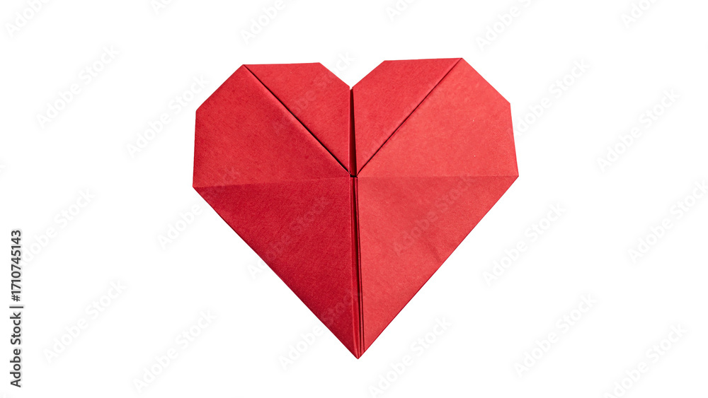 • Red origami heart for decorating gifts, love celebrations on a transparent background.